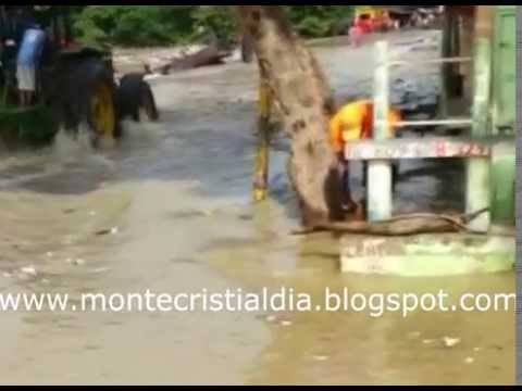 CASTAÑUELAS, Rep. Dom.-Fuertes inundaciones se registran en esa localidad, debido al desbordamiento del río Yaque del Norte.Varias famili...